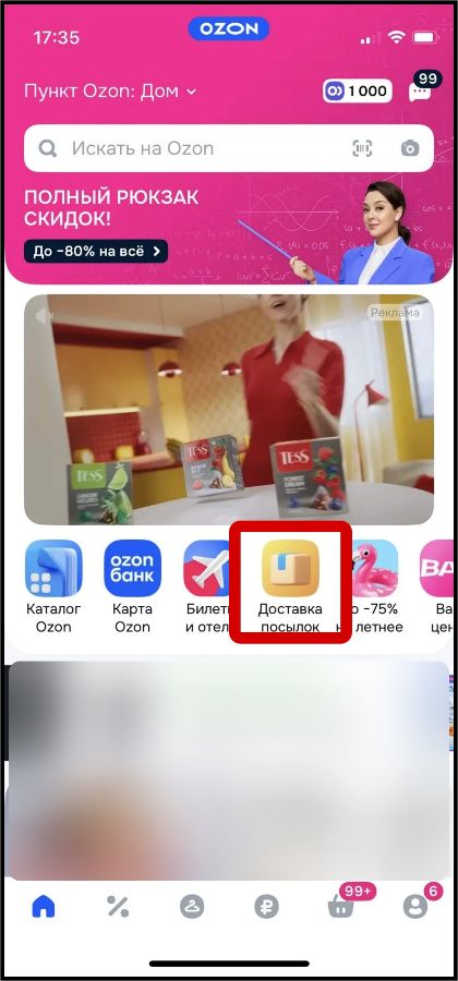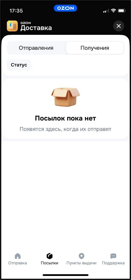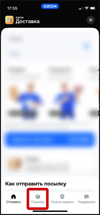 Если вдруг в Вашем приложении ОЗОН нет раздела "Доставка посылок", значит нужно просто обновить приложение и разел появится.