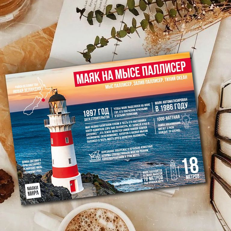 (RU) Маяки мира. Новая Зеландия. Маяк на мысе Паллисер 21 ₽ В корзину В корзину Формат: A6 (105 × 148 мм)Картон: 300 г/м2Оборот: не мелованныйМетод печати: офсетЛаминация: глянцевая (лицевая сторона) Формат: A6 (105 × 148 мм)Картон: 300 г/м2Оборот: не мелованныйМетод печати: офсетЛаминация: глянцевая (лицевая сторона) Поделиться