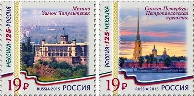 Тематика совместного выпуска почтовых марок России и Мексики —памятники архитектуры.