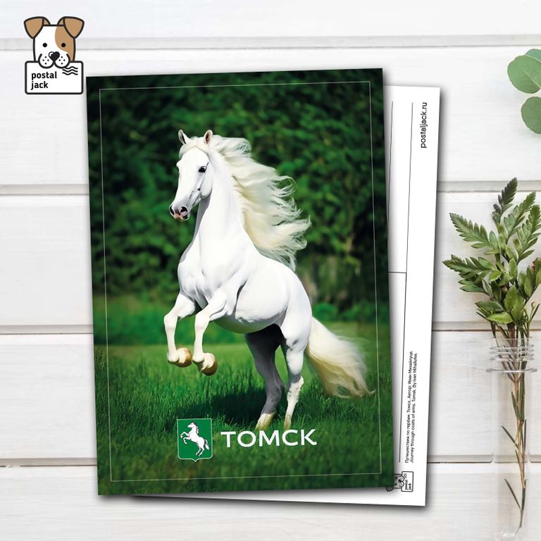 Изображенная на гербе Томска лошадь указывает на то, что раньше здесь были лучшие скакуны . Подтверждением данной версии является выдержка из документа 1785 г. Коней разводили на специальных заводах проживающие поблизости татары. Эти животные были важны для горожан, местной экономики, поскольку многие томичи занимались извозом. Кроме того, конь считается символом силы, свободы и скорости.